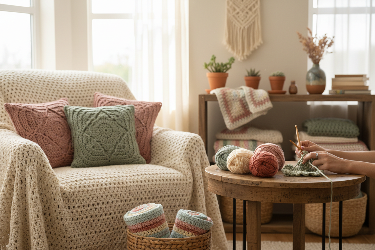 Crochet Handmade Set of 2 Small Hanging Wall Baskets Colour Arctic